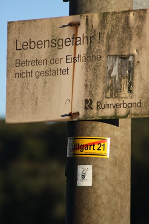 Ob der darüber befindliche Hinweis mit der Lebensgefahr und dem “dünnen Eis” absicht sind, kann man nur raten.